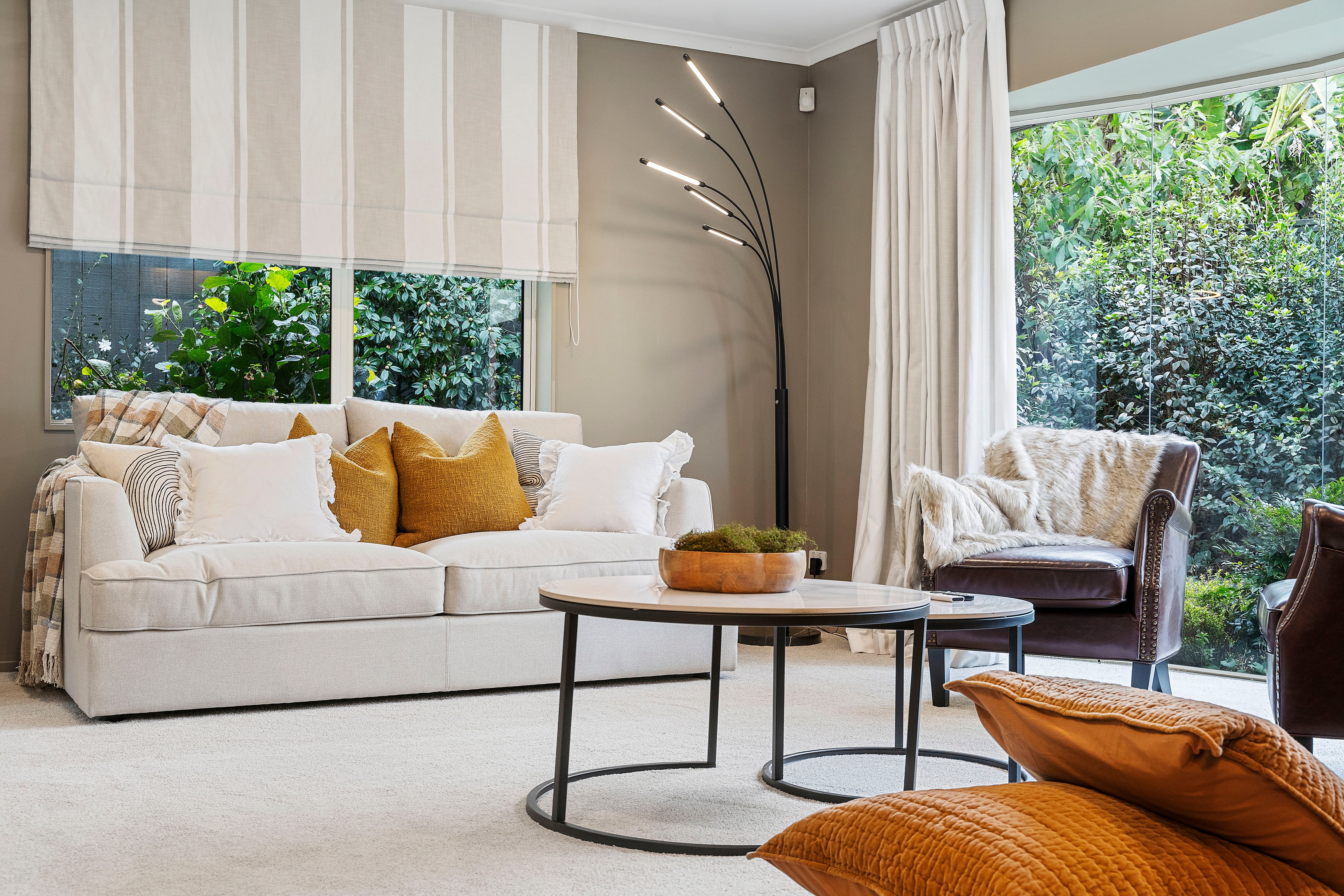 Choose the same fabric for both Roman blinds and curtains to create a sophisticated, unified look — perfect for achieving calm, balanced spaces.