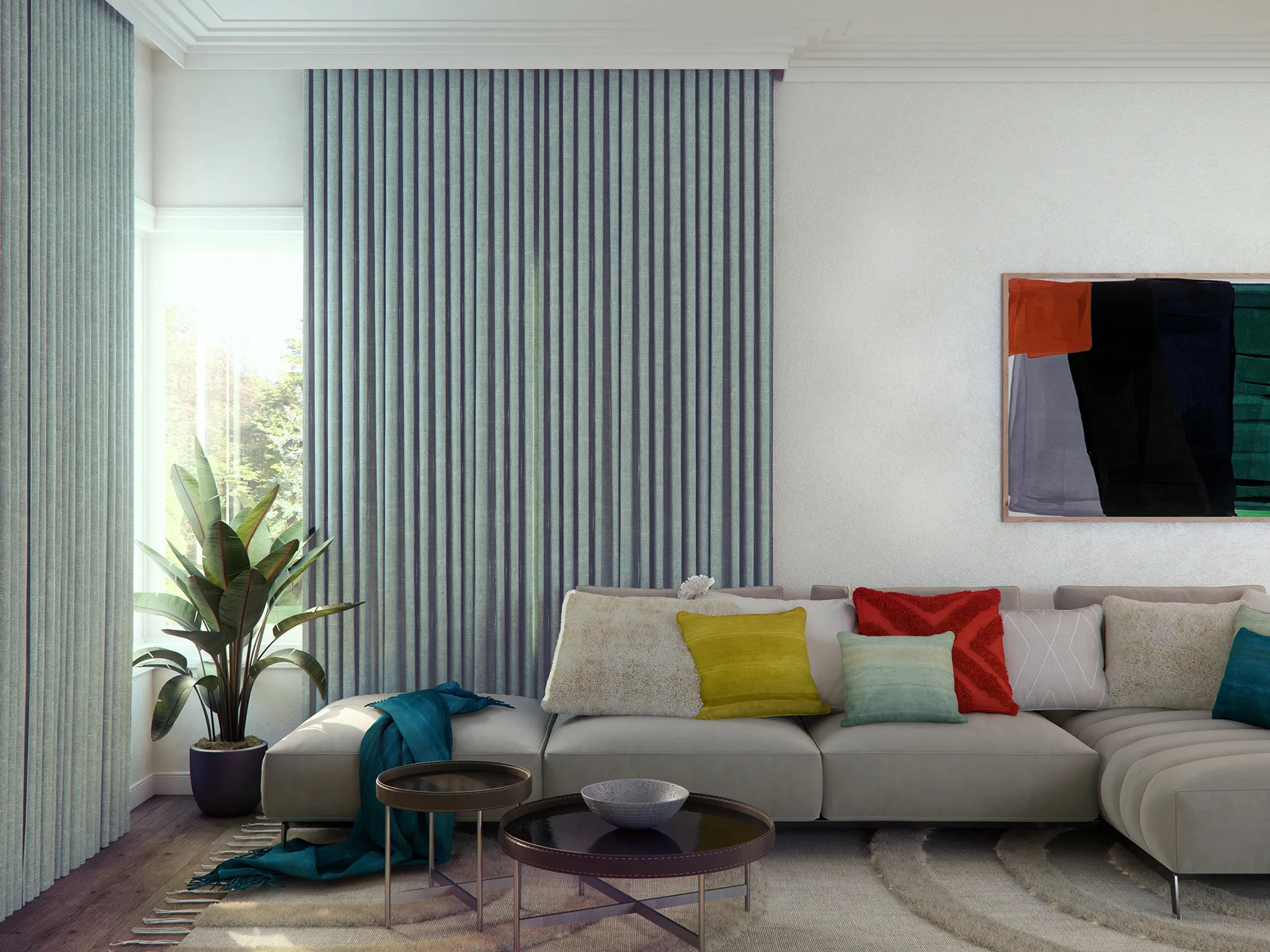 Crafted with triple weave technology, Emerson features an integrated lining for enhanced light filtering, thermal insulation, and privacy—perfect for a polished look and practical performance in any room