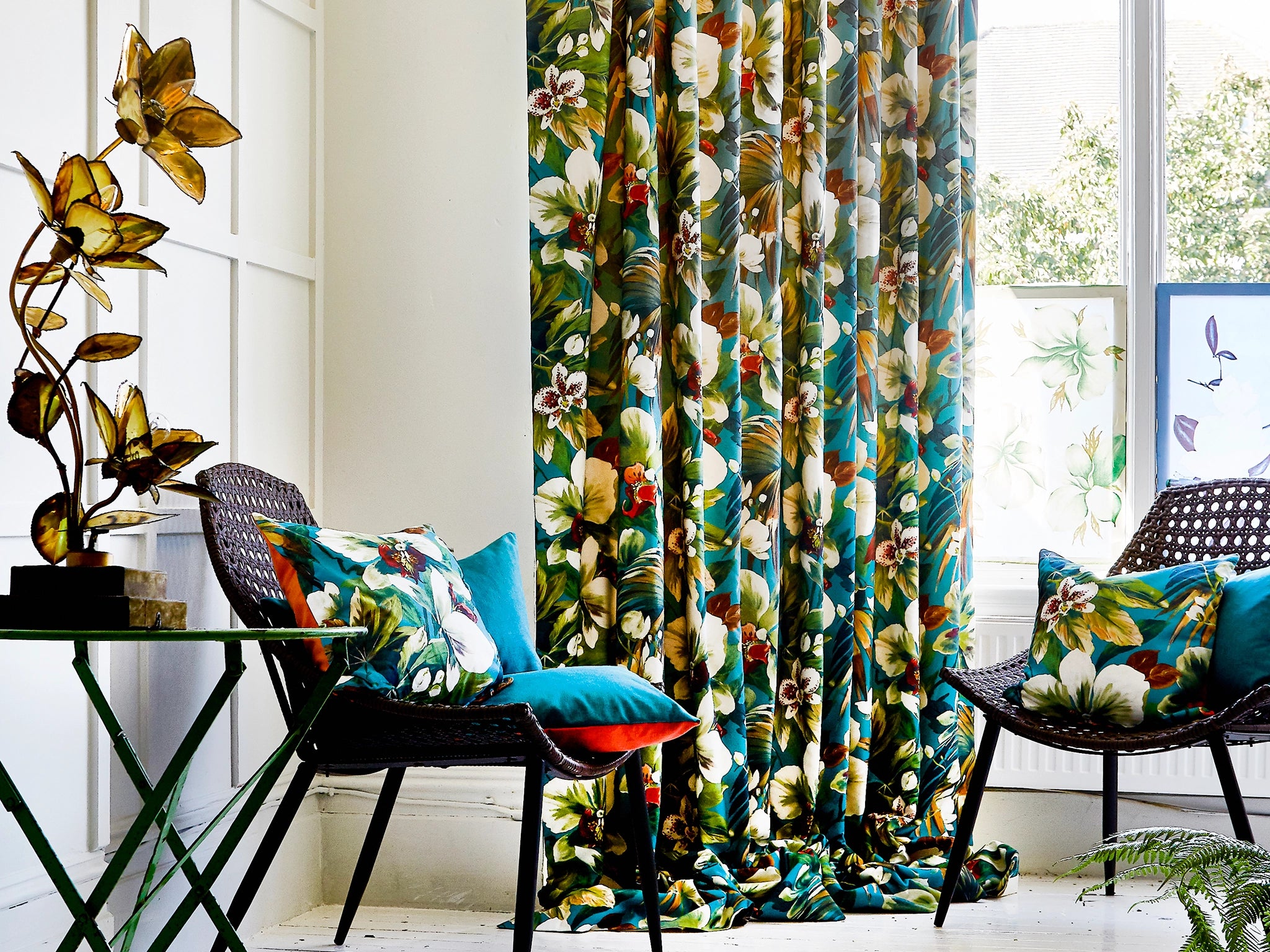 Envoke a tropical feel with this modren and bright print. Encompassing floral and botanical, Maya will brighten up any space and create a feeling of being on holiday.