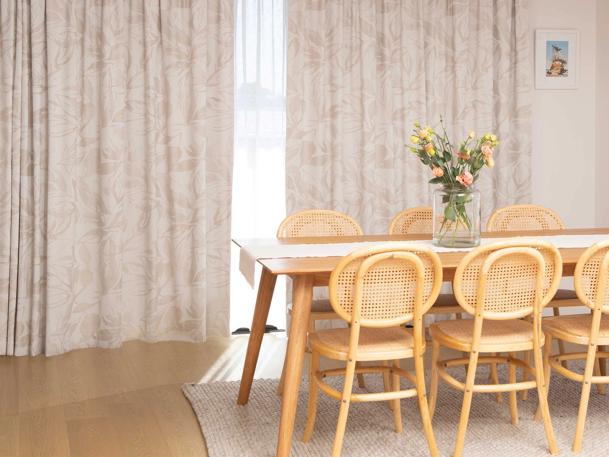 A beautifully detailed print, inspired by the organic beauty of nature, in either a elegant charcoal hue or soft natural tone.