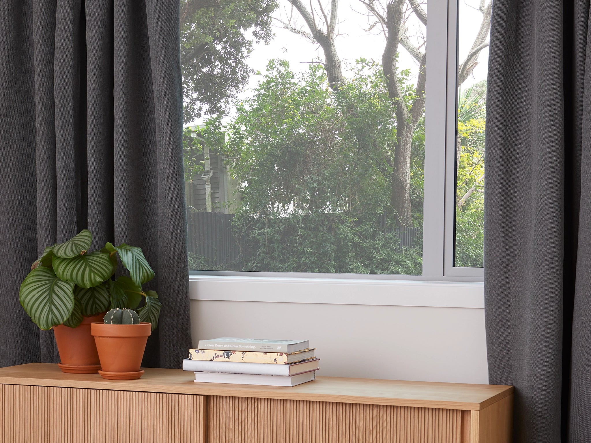 - Space permitting, add 20cm to each end (40cm in total) to give enough track for the curtains to be pulled off the window when open.